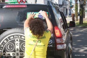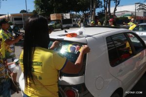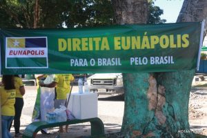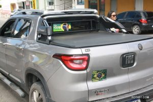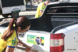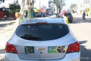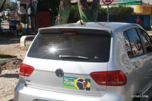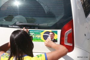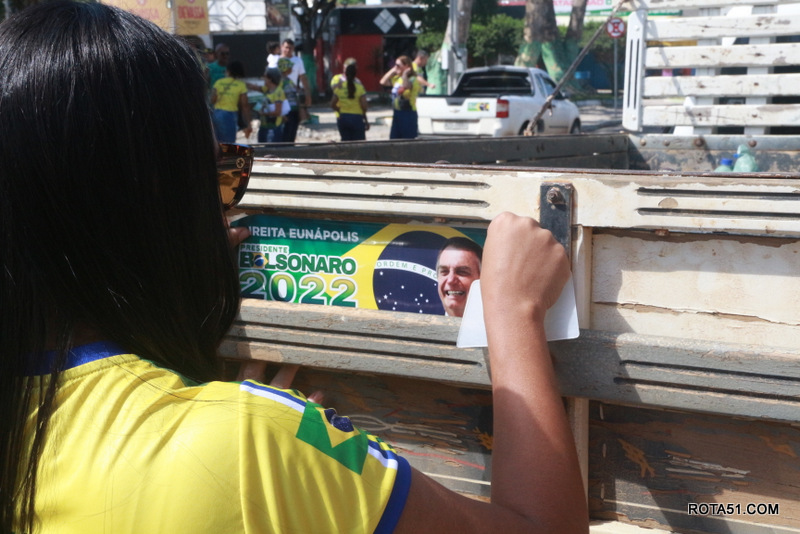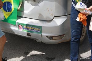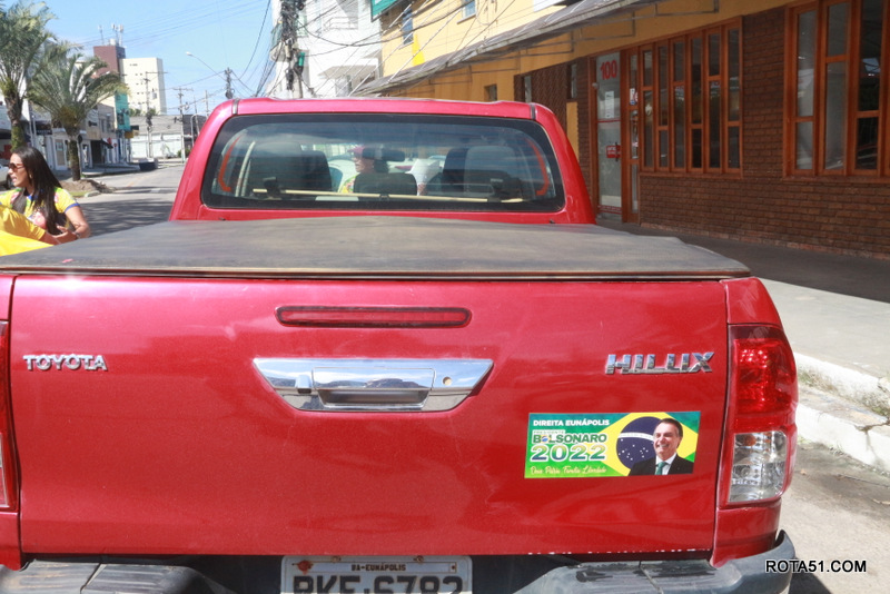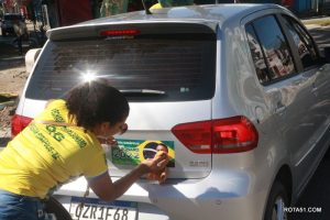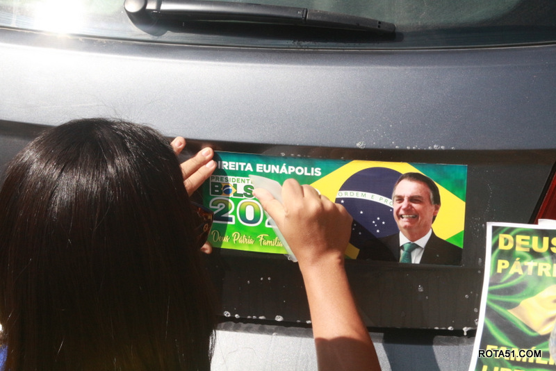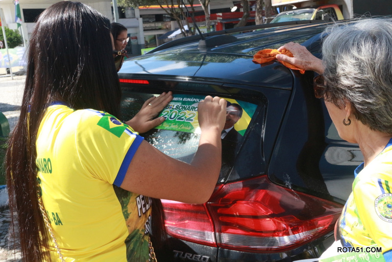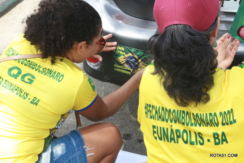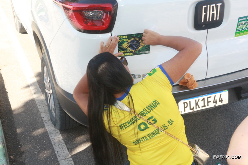Em Eunápolis, neste domingo, aconteceu na praça da Bandeira, no centro da cidade, um “adesivaço” pro Bolsonaro, onde quase mil carros foram adesivados e as paradas eram todas involuntárias, em muitos casos, embora tinha aproximadamente umas 100 pessoas, colocadas para este trabalho, quase não deram conta do recado, isto pelo fato de muitos carros pararem, e terem de esperar alguns minutos para levarem o adesivo pela reeleição do “capitão” Jair Bolsonaro.