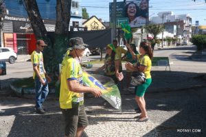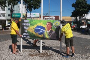 Neste domingo, 1º de maio, DIA do TRABALHO, os bolsonaristas eunapolitanos, foram para a praça da Bandeira, promover o adesivaço pro Bolsonaro, na esperança de que as pesquisas em favor do presidente se confirme nas urnas, embora a esquerda diga que não, mas está claro, que mesmo sem o apoio de uma grande parte da mídia, Bolsonaro está muito bem cotado para a reeleição que poderá dr ao Brasil um pouco de honestidade, pois embora esteja no poder e busca a sua reeleição, não se tem noticia de que, um centavo brasileiro, foi construir, porto, refinarias e nem pontes monstruosos em outros países, por outro lado, contra o atual presidente, uma corrente muito forte tente enganar o povo, mas por todos os lugares por onde anda, a massa brasileira caminha ao seu lado.