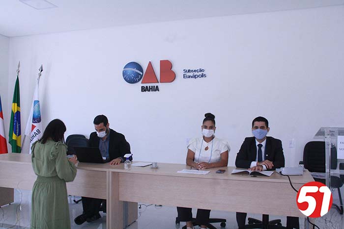 Duas chapas concorreram à presidência da OAB uma conduzida pelo advogado Dr. Fabrício Ghill Frieber e a outra pelo advogado Dr. Zaqueu Muniz, depois de um dia inteiro de votação, tão logo terminaram as votações, o resultado saiu quase que imediatamente, Dr. Zaqueu venceu e, dentro em breve irá comandar a OAB de Eunápolis.