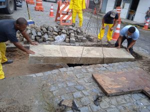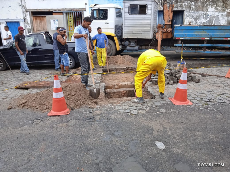Neste final de semana, as equipes da Secretaria Municipal de Infraestutura e Obras realizaram a recuperação do calçamento e do sistema de drenagem da Rua Governador Luís Viana Filho, nas proximidades da balsa.