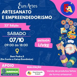 Neste sábado, dia 07/10, a FEIRA DE ARTESANATO será realizada na av D. Pedro II, em frente a Caixa Econômica Federal.