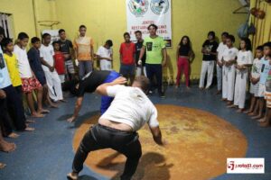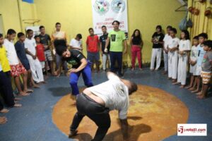 Mas em Eunápolis, esta arte caminha a passos lentos, porque nem a câmara de vereadores e não os administradores, se deram conta de que; a capoeira, antes de ser uma luta, com a didática religiosa do mestre Irineu, muitas destas crianças acompanhadas de suas mães, vão até a residência do mestre Irineu, para ver seus filhos trilhando uma outra estrada, onde muitos jovens que se perderam por falta de uma consciência paternal e maternal, já que o mestre Irineu, tem a sua academia em sua residência e com o apoio de sua esposa, que antes da aula desta noite, fez um momento de reflexão religiosa, numa demonstração de fé e esporte.