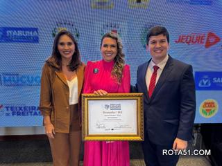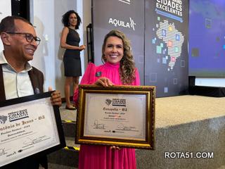 “Fico muito honrada com esse prêmio que pertence a todos os secretários, toda comunidade eunapolitana, todos que se empenham em fazer uma Eunápolis para todos. Sustentabilidade é ter base, apoio e estamos construindo uma Eunápolis com responsabilidade, com uma gestão que cuida de gente, se preocupa com a sociedade e em promover um futuro melhor e mais justo”, declarou a prefeita Cordélia.