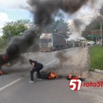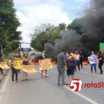 Existe um erro muito grande nisto tudo, o prefeito deveria ter chamado todo mundo, mostrado o contrato, as cláusulas se ele poderia ou não demitir e cortar salários. O que acontece é que, por falta de comunicação, a situação está cada vez mais crítica, principalmente agora que é período eleitoral, e o pior, pelo fato de ser período eleitoral, os adversários do prefeito, uma coisa se junta a outra, e torna a vida eleitoral do prefeito mais crítica ainda, aí se junta a fome com a vontade de comer, e é preciso ter cuidado, para diferenciar o sujo do mal lavado, e nesta manhã houve um protesto na Br 101, com pneus queimando na pista, o trânsito parado nas duas direções, com muitos motoristas procurando alternativas para seguirem viagem e, o caos se formou à altura dos fundo do hospital AMES, até que a polícia resolva intervir, ou prefeito enviar uma equipe de negociação para o bem de todos, QUEM TEM FOME NÃO PODE ESPERAR. E como sempre a Polícia Militar no local, para manter a lei e a ordem, preservando os direitos civis dos professores e de quem passavam pelo local. Vejam o vídeo: