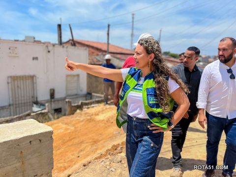 A prefeita iniciou suas visitas técnicas pela Rua Lua Nova, localizada no bairro Moisés Reis, uma das principais obras da atual gestão. Neste local, está sendo finalizada a instalação da pavimentação com blocos de concreto intertravado. Além disso, foram implementados um sistema de drenagem e um muro de contenção na encosta, medidas fundamentais para evitar danos causados pelas chuvas e proporcionar maior segurança aos moradores da região.