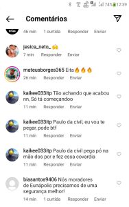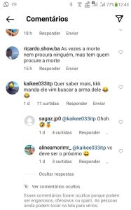 Na mesma publicação, o perfil fake https://instagram.com/kaikee033itp comentou, entre outras coisas: