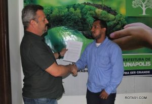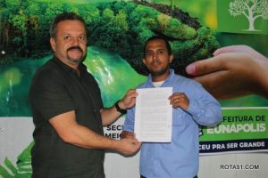 Eunápolis recebeu a doação de um terreno de 2.700 metros ², localizado no bairro Nacional, onde será construído um galpão para acondicionar materiais recicláveis coletados por associações e cooperativas que atuam no município, fortalecendo a política ambiental implantada pela atual gestão municipal. O documento que oficializa a doação foi entregue na tarde de quinta-feira (21) ao secretário de Meio Ambiente, Sandro Lopes, por um representante da empresa de resíduos sólidos Naturalle.