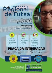 O município de Eunápolis irá sediar o Congresso Regional de Futsal na Praça da Integração, nesta sexta-feira, dia 04. A realização do evento é resultado da parceria da Prefeitura de Eunápolis – por meio da Secretaria de Esporte, Juventude, Cultura e Lazer – com a Federação Baiana de Futsal.