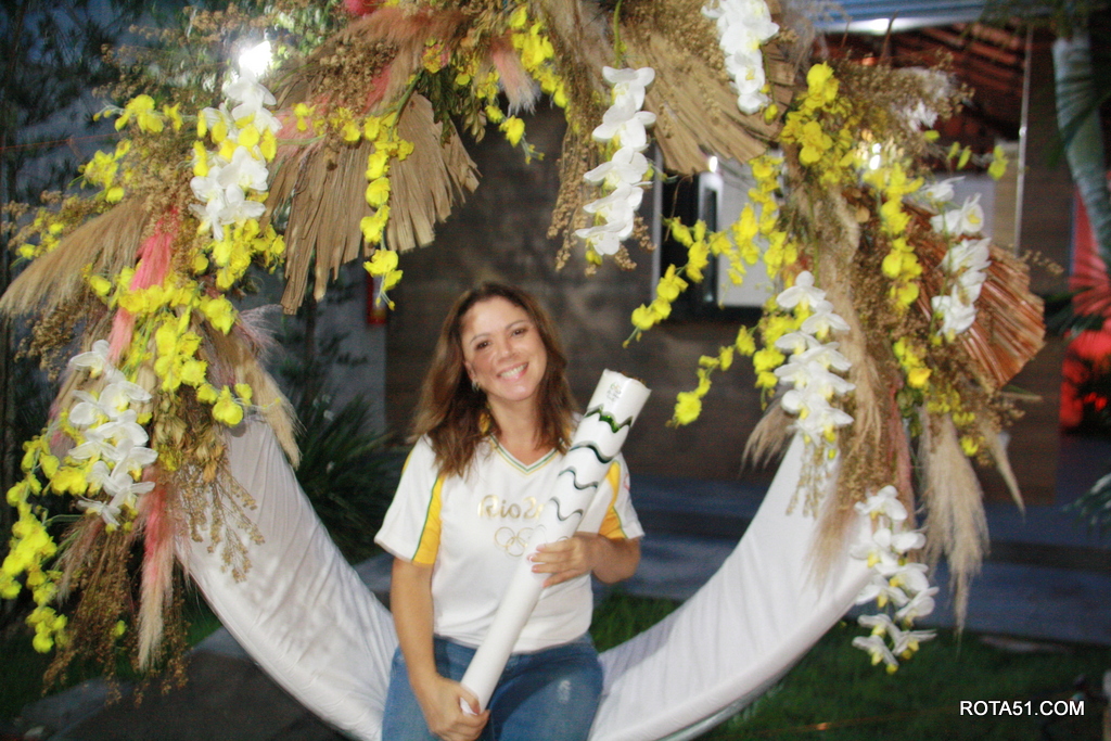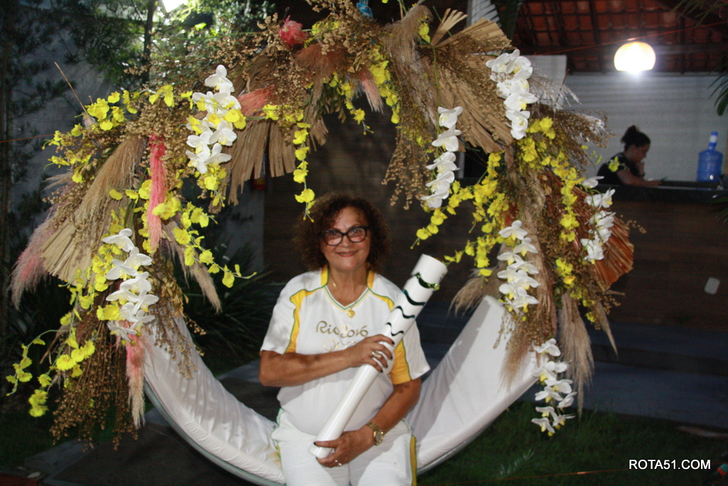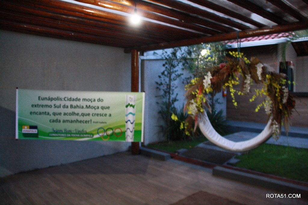 Na oportunidde a profª Rose, chamou à frente, outra professora que foi a criaddora da frase, que ilustrou o banner da chegada , na rcepção a todos os presentes participanrtes, de terem um dia, participado de um momento único e histórico de Eunápolis, que foi a condução da tocha olímpica, pelas ruas da cidade.