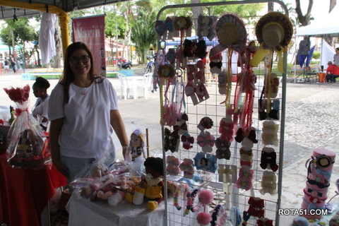 Na feira, o artesanato é uma constante, pois muita gente confecciona vários trabalhos interessantes, que vai de sabonetes odorizados, até bolsas de diversos tamanhos, para uso diário.