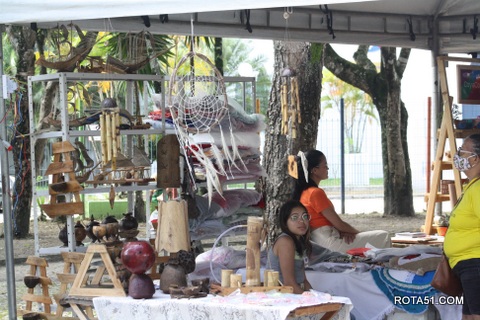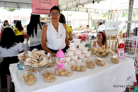 E estas habilidades não se restringem somente aos artefatos artesanais em enfeites, pinturas em panos e outros artefatos expostos, a cozinha também aparece em muitas bancas, são as deliciosas guloseimas que enchem a boca d’água, muitos degustam por alio mesmo, outros levam para casa, para dividirem com seus familiares.