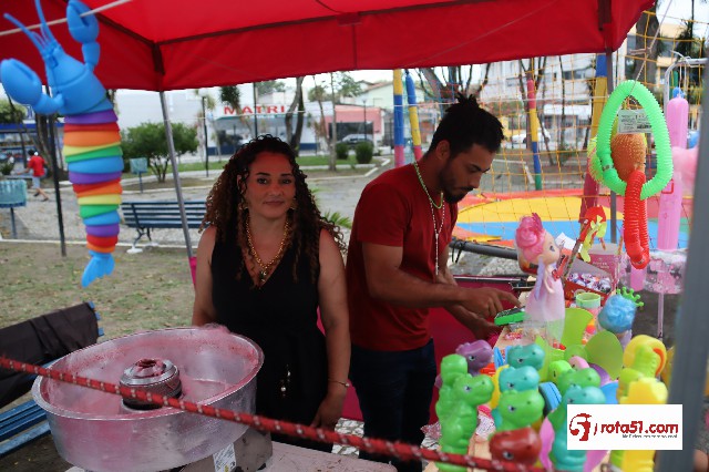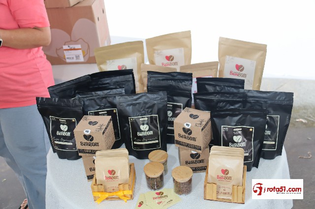 Também presentes na feira de artesanato, a GCM, Guarda Civil Municipal, como parte do patrimônio cultural da cidade. Além de presentes, a feira também exibe o café BemBom, café puro e totalmente artesanal, e para quem tem crianças, a feira também trem um bom divertimento infantil.