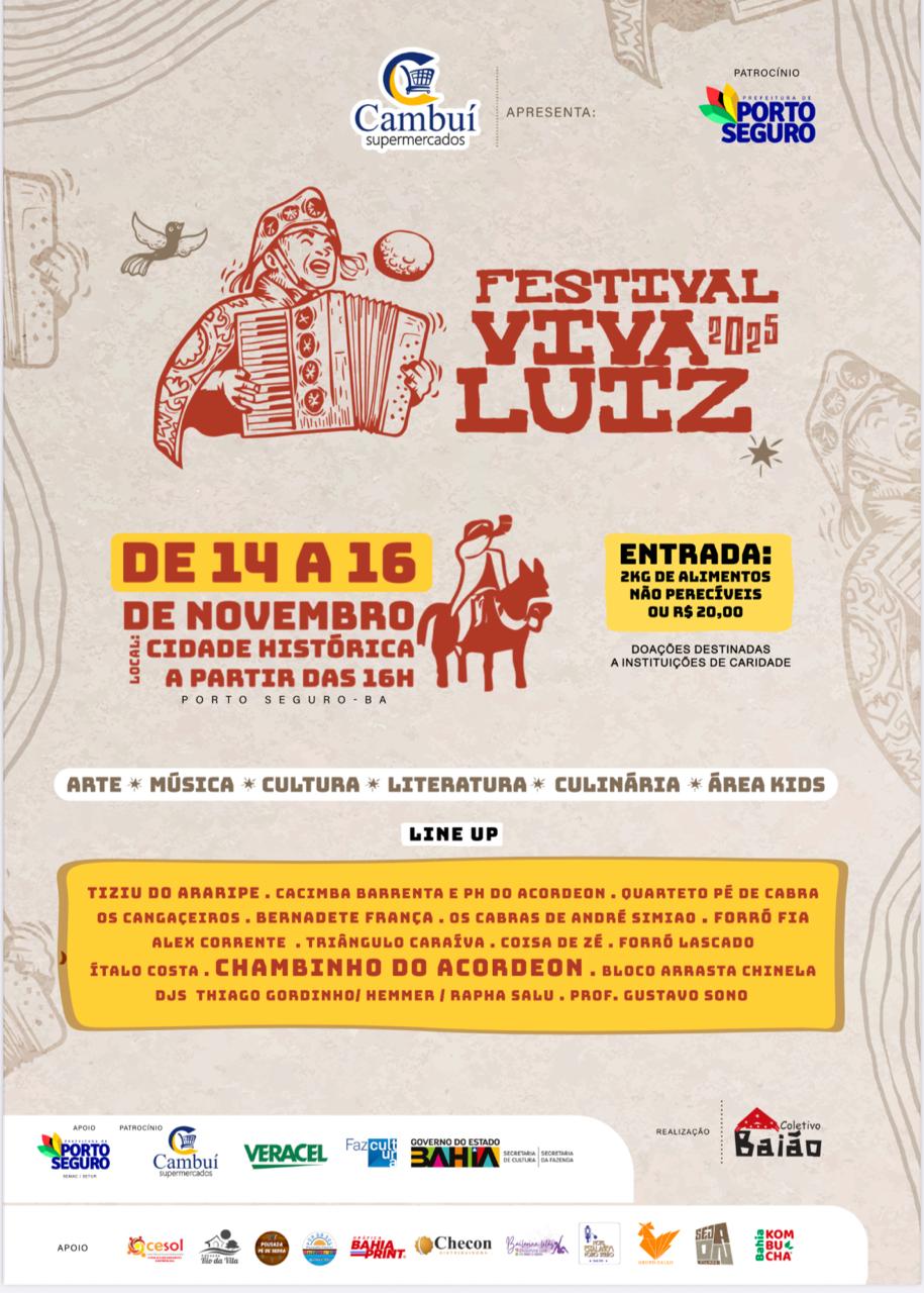 Porto Seguro se prepara para um fim de semana de pura brasilidade em novembro. Nos dias 14, 15 e 16, a Cidade Histórica ganhará novos sons e cores com o Festival Viva Luiz 2025, uma homenagem à herança de Luiz Gonzaga e ao irresistível ritmo do forró pé de serra.