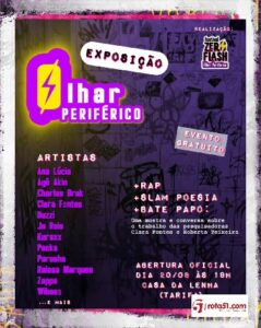 A cena urbana vai ganhar ainda mais cor e voz com o Festival Zero Flash – Olhar Periférico, que une artes visuais, música e cultura de rua em uma programação potente. O evento começa com a abertura da exposição Olhar Periférico na próxima quarta-feira (20), às 19h, na Casa da Lenha, reunindo obras de artistas periféricos e linguagens como fotografia, grafite, videoclipes e poesia. A noite contará ainda com bate-papo com as pesquisadoras Roberta Teixeira e Clara Fontes, discotecagem e o Slam Denúncia, trazendo rimas e versos de resistência.