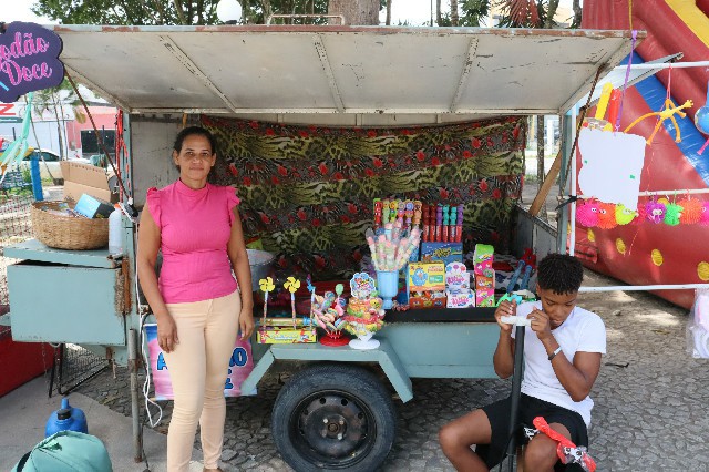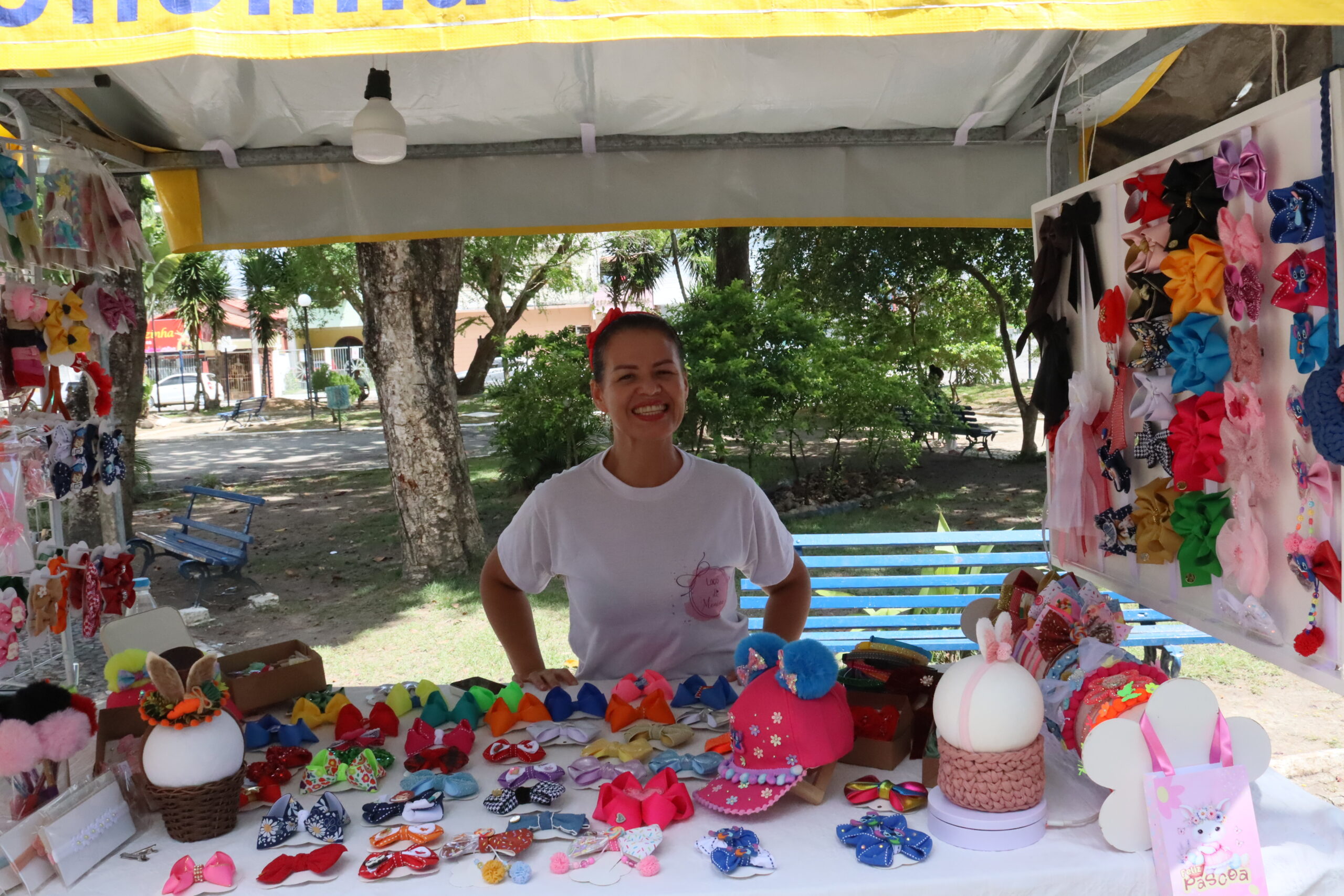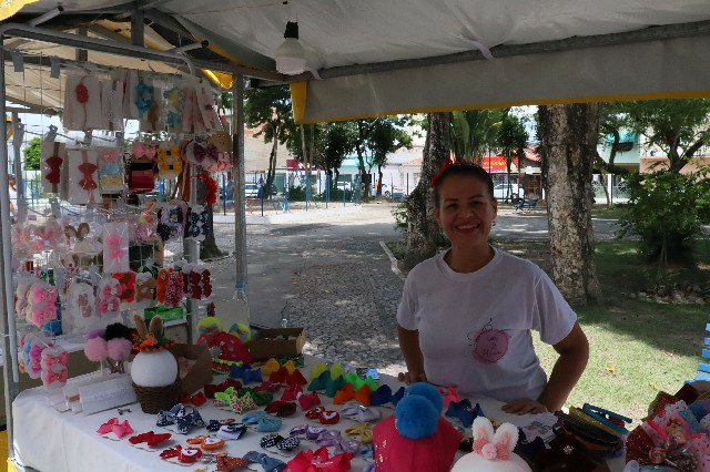 Karina por outro lado, tem se mostrado uma gigante diante desta feira, que sempre tem buscado apoios comerciais e, tem também, recebido apoio total de todos os artesãos da cidade que querem expor seus trabalhos, que vão desde o churrasquinho até os brinquedos infantis, que ajudam os pais a darem aos seus filhos momentos de lazer e alegria.