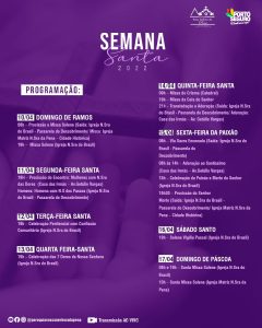 A Paróquia Nossa Senhora da Pena promove as tradicionais celebrações da Semana Santa há mais de 300 anos, marcando de forma especial o espírito da quaresma. Serão missas, procissões e celebrações muito especiais que começam no Domingo de Ramos, em 10 de abril, e seguem até o Domingo de Páscoa, no dia 17 de abril.