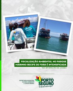 A Fiscalização Ambiental de Porto Seguro intensificou as rondas e vistorias ao longo do Parque Natural Marinho do Recife de Fora, visando coibir a prática de atividades não previstas em seu Plano de Manejo.