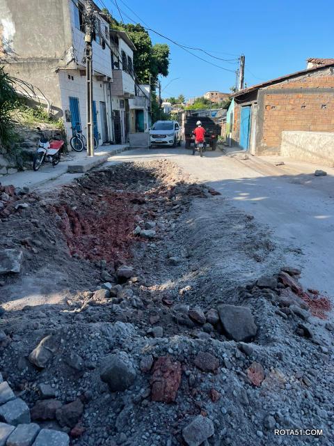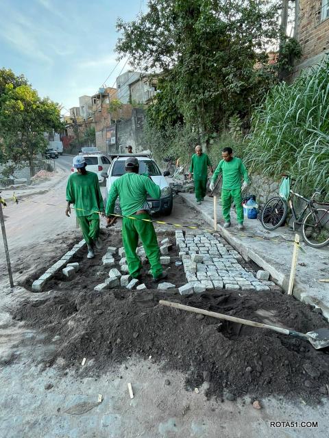 Já nas imediações da Ladeira do Paraguai, no bairro Paraguai, e na Rua das Águias, no Mirante, foi feito o reassentamento do piso em paralelepípedo.