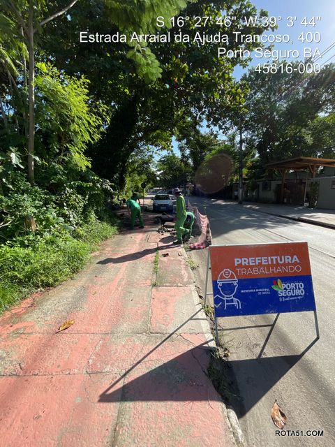 Na Estrada da Balsa, em Arraial d’Ajuda, foram feitas limpeza de caixa e substituição das tampas de concreto danificadas. No bairro Mundaí, na Avenida Bahia, foi criado e instalado uma drenagem das águas pluviais com tubos em pvc.