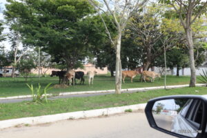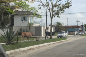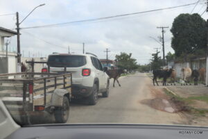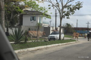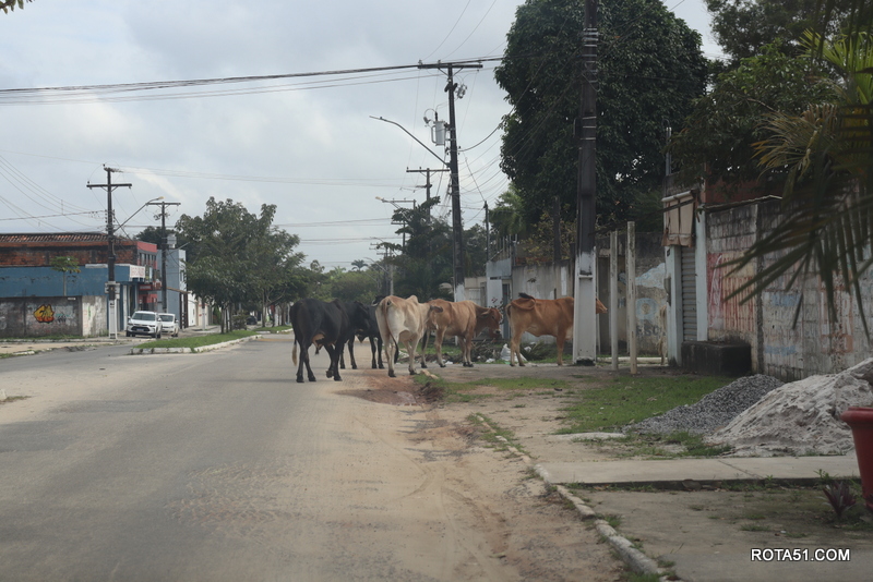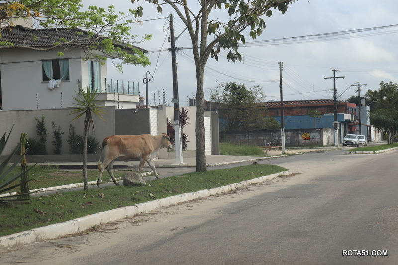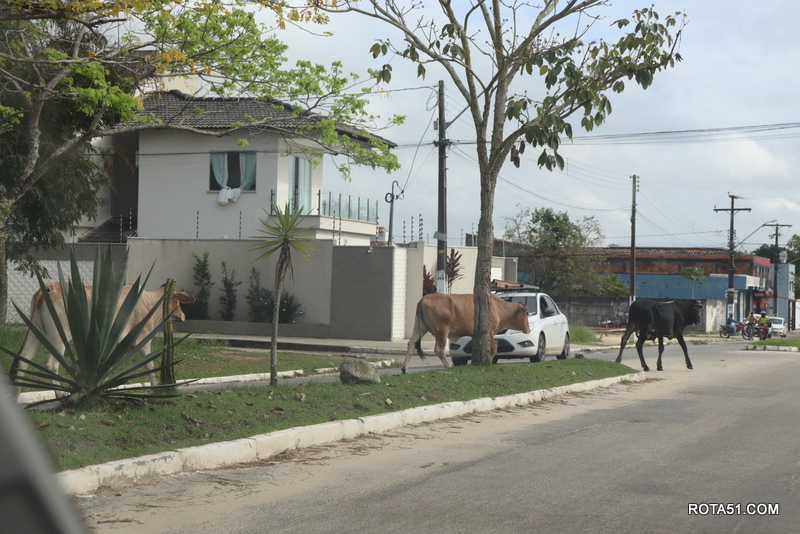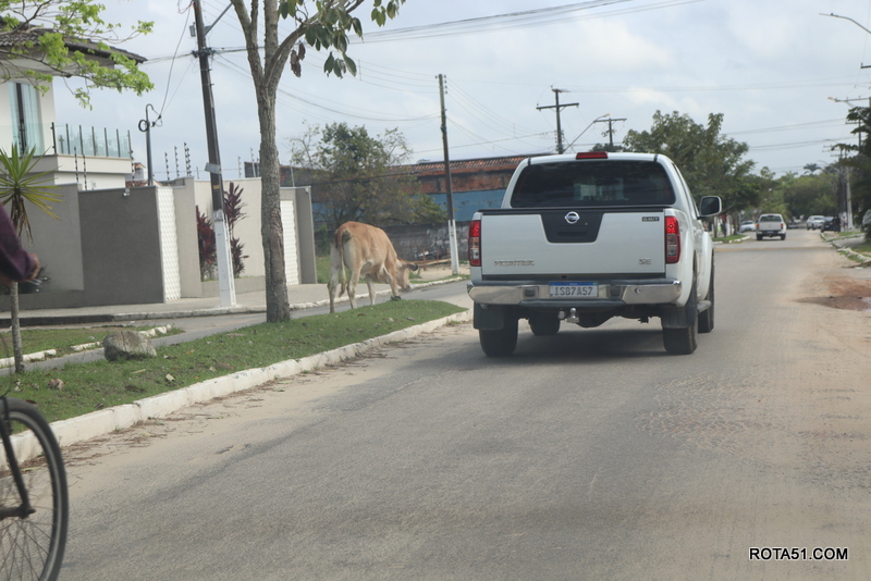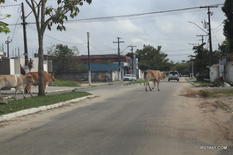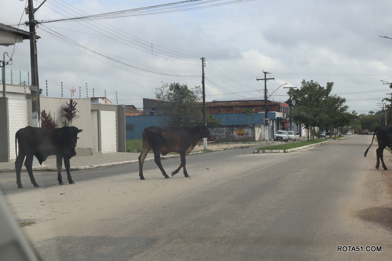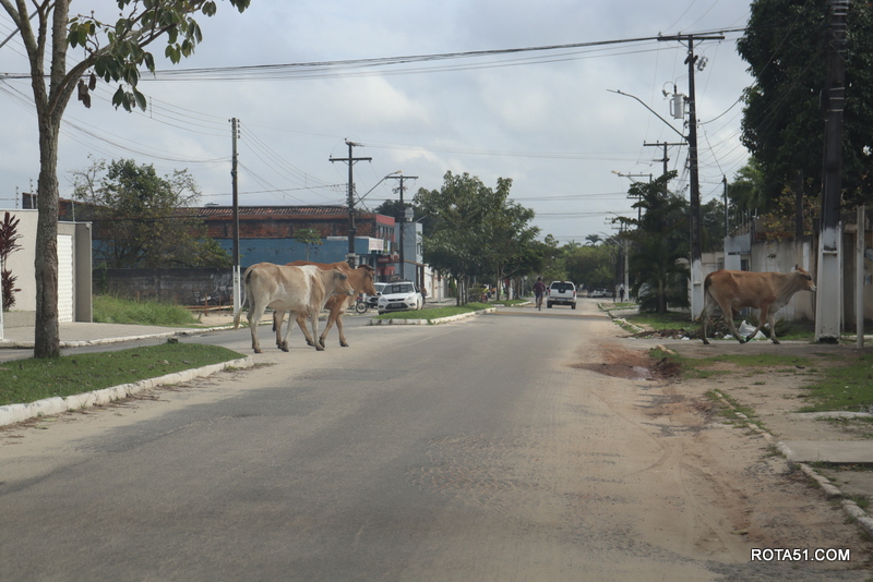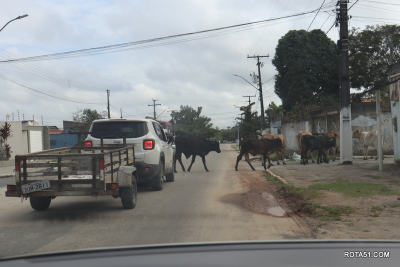 O rota51.com fez os registros na avenida da Câmara Municipal, na pracinha local, o dono pode até não gostar, mas também não tem direito de reclamar, há uns tempos atrás, um carro da PRF, prendia tudo, mas agora parece que faltam as denúncias, e o gado disputa o asfalto com os carros na avenida.