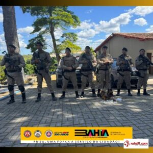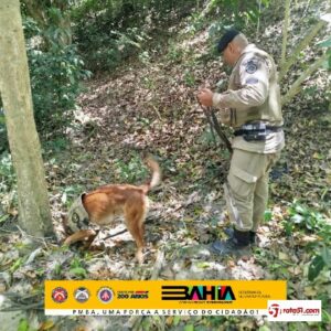 No dia 06 de dezembro de 2024, por volta das 08h, o Grupamento de Cães do 8° Batalhão de Polícia Militar – Porto Seguro, apresentou-se em apoio ao Pelotão de Emprego Tático Operacional desta unidade, após denúncias de que em zona de mata do bairro Juca Rosa de Eunápolis, haveria tonéis enterrados armazenando drogas e armas de alto calibre.