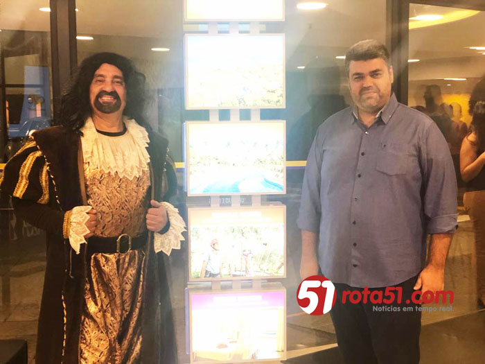 O diretor executivo, Richard Alves, com o diretor Geral, Guto de Paula e o e o personagem de Cabral
