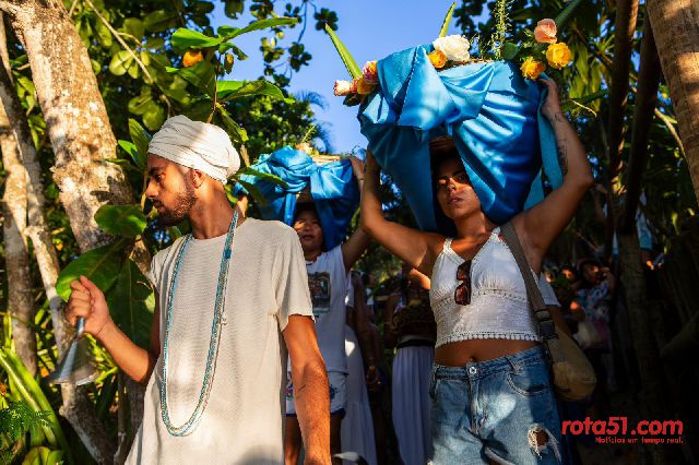 Em Arraial d’Ajuda, organizada por Pai José Luís do Ilê Axé de Xapanã, a programação teve início às 14h, com a concentração na Praça São Brás, onde os cânticos para os Orixás, o tradicional banho de pipoca e a purificação com água de cheiro marcaram o ritual de bênçãos. Em seguida, uma caminhada levou a multidão até a Praia dos Pescadores, onde embarcações decoradas com flores e fitas conduziram as oferendas ao mar. O encerramento da celebração contou com um show musical na Praça São Brás, às 21h, reunindo fiéis e visitantes em um momento de alegria e devoção.