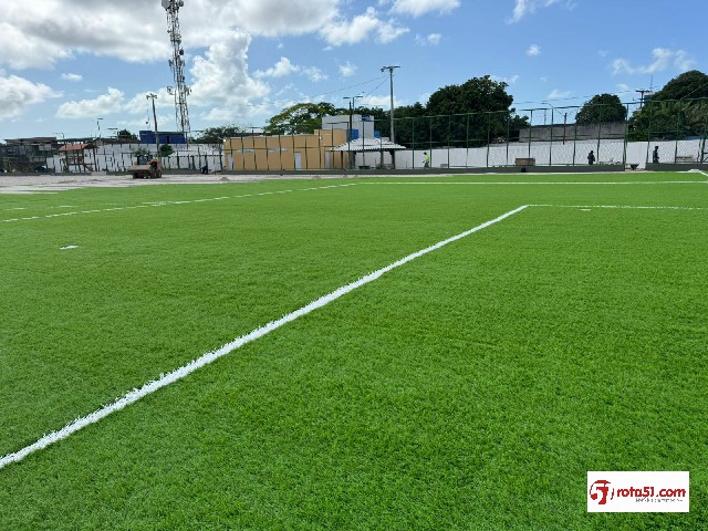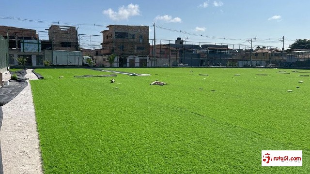 Mais um importante equipamento esportivo está sendo modernizado e ampliado no coração do Baianão. A Arena Ventania, que antes era um campo de futebol de barro, está sendo transformada com a instalação de um gramado sintético e um sistema de drenagem lateral para garantir melhor conservação.