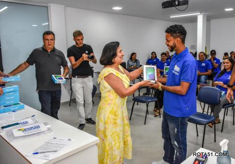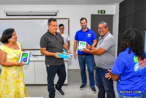 Alunos do Projeto “Gari na Universidade” estão recebendo tablets para dispor de um ambiente virtual de aprendizagem, acesso à plataforma de ensino da Unicesumar, App Studeo, que vai estender o tempo pedagógico dos profissionais para além da sala de aula, facilitando a realização das atividades acadêmicas.