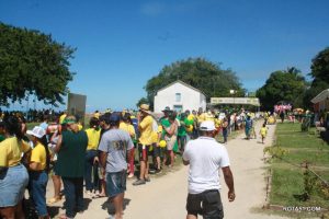 Para a visita do Bolsonaro, na cidade histórica, se concentraram evangélicos, católicos, e representantes de várias outras religiões, mas todos com um só intuito, de ver de perto o presidente, sendo alguns até conseguiram fazer selfies e abraça-lo, mas tudo foi feito com muita cautela.