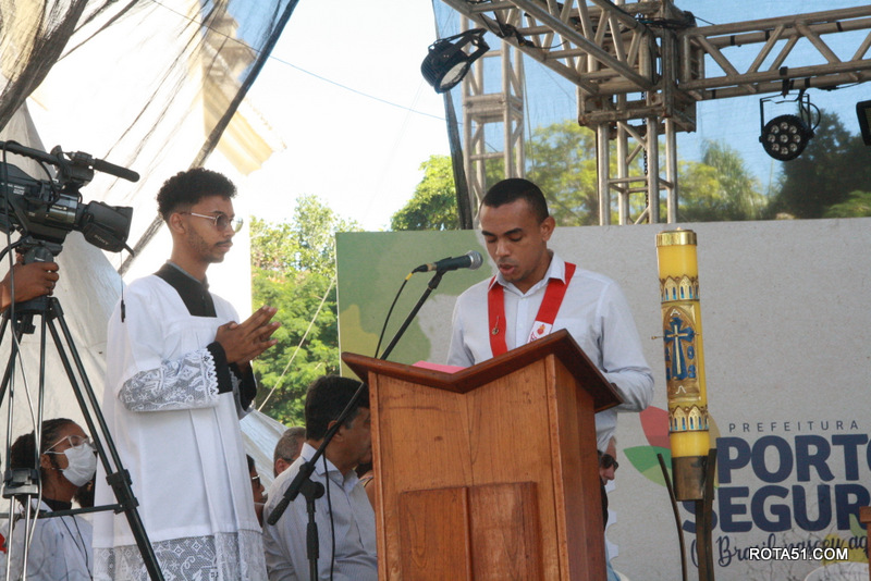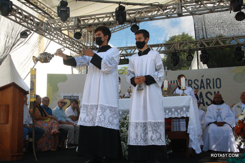 Pela manhã, foi concelebrada uma missa, pelo Bispo D. José Edson, ao lado de vários padres, onde depois os fiéis, comungaram, e ao término da missa, a banda de música, executou algumas músicas, como parte do festejo, pelo aniversário de 522 anos do descobrimento do Brasil.