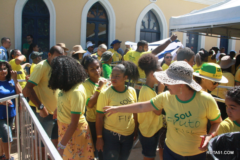 Para a visita do Bolsonaro, na cidade histórica, se concentraram evangélicos, católicos, e representantes de várias outras religiões, mas todos com um só intuito, de ver de perto o presidente, sendo alguns até conseguiram fazer selfies e abraça-lo, mas tudo foi feito com muita cautela.