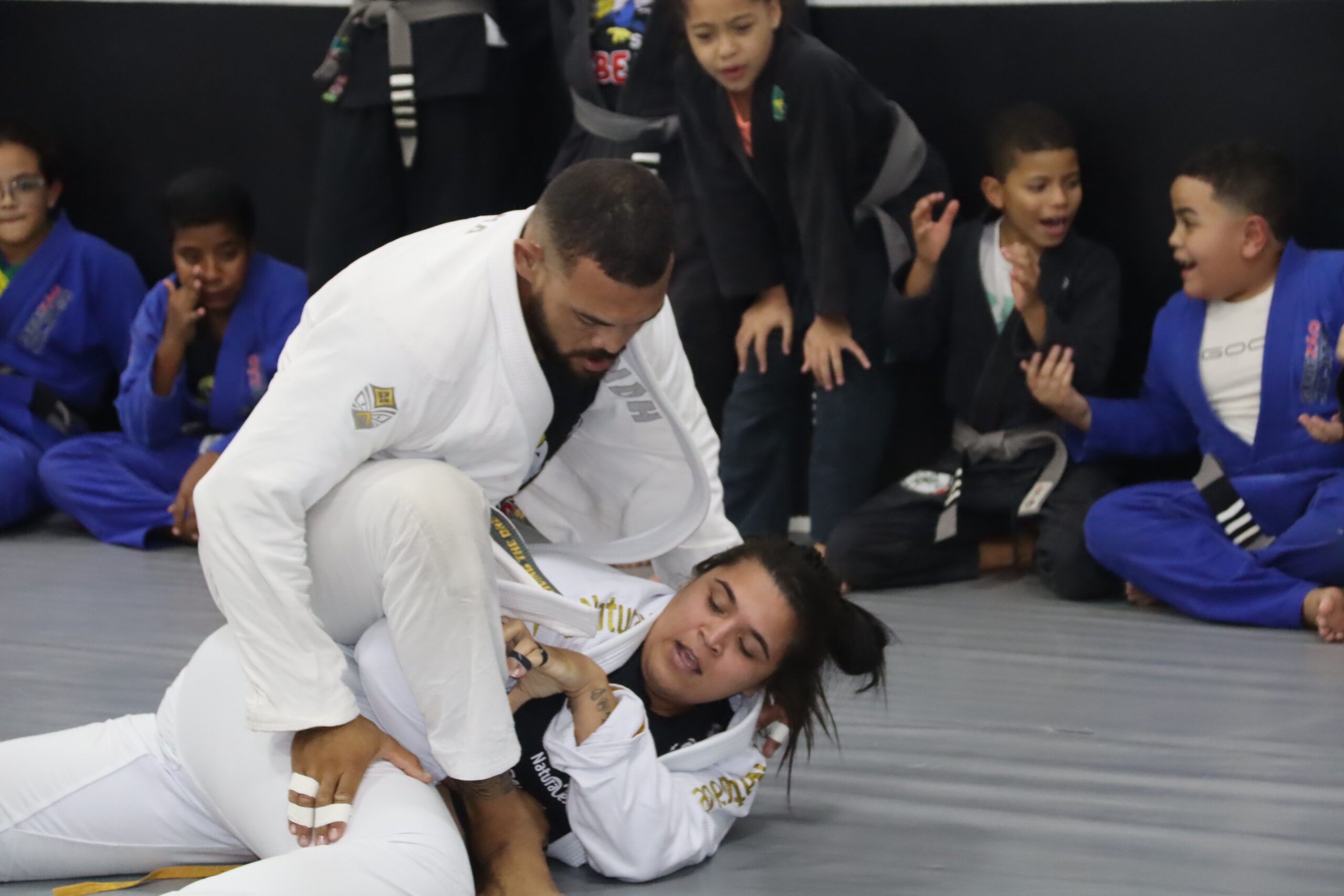 O trabalho infantil que conta com aproximadamente 26 crianças, onde os pais acompanham sempre as aulas que são ministradas às crianças, e não é só o Jiu Jitsu não, as artes marciais, incluem o judô, karatê e muitas outras artes, que vão das academias ao cinema.
