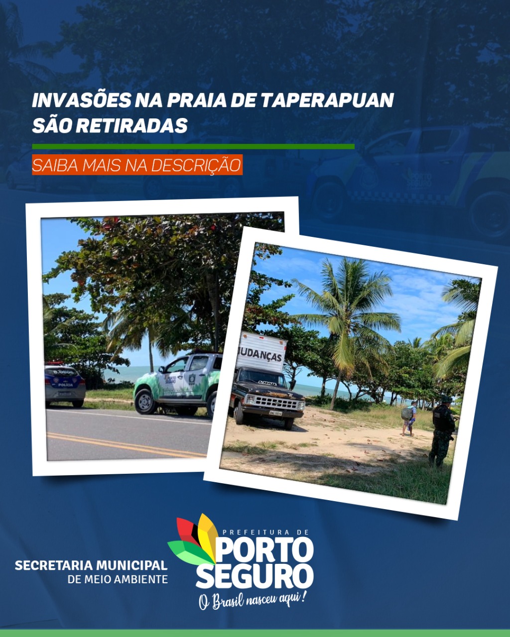 Barracos de madeira, bambu e de lona instalados de forma irregular na Praia de Taperapuan, na Orla Norte de Porto Seguro, foram retirados pela Prefeitura, por meio das equipes das secretarias municipais de Serviços Públicos e de Meio Ambiente, com apoio da Guarda Civil, Polícia Militar e Cippa.