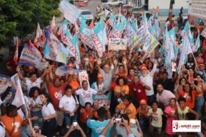 Ramos também caminhou ao lado de Neto Guerrieri, Jorge Maécio e Vavá da Farmácia e elogiou o rol de candidatos a vereador da coligação “Pelo Bem de Eunápolis” dizendo que cada um deles representa as diversas camadas da sociedade local.