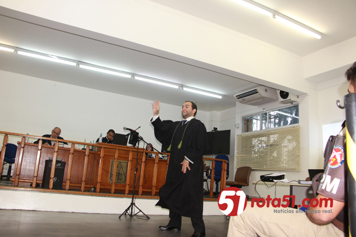 Depois foi a vez da defensoria Pública, na pessoa do Dr. Henrique, que também dentro do processo, buscou todas as falhas das investigações, sendo que Dr. Henrique, chegando a chamar o policial que foi o primeiro a depor de “mentiroso”, dizendo que ele foi mentir descaradamente, mas que o processo, em nenhum momento, colocava Paulinho da Cigana como assassino, por outro lado Paulinho da cigana, foi acusado de ter matado outra pessoa, mas nas investigações, a polícia descobriu que o assassino da outra vítima era apensa um homônimo e esmo assim o crime já havia sido prescrito. No depoimento do policial, houve um início de bate-boca entre o policial e Dr. Henrique, que foi necessário a intervenção de Dr. Otaviano, para serenar os ânimos.