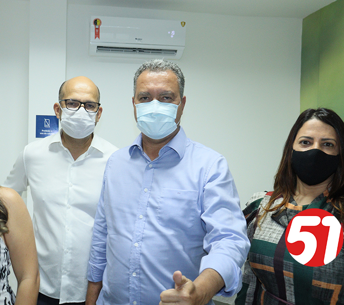 Robério e Cláudia Oliveira , tendo ao centro o gov Rui Costa