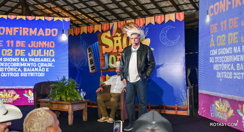 A programação completa do São João de Porto Seguro foi revelada numa noite de festa, no Hotel Eco Bahia, nesta quarta-feira, 25. O prefeito de Porto Seguro, Jânio Natal, acompanhado do vice-prefeito e secretário de Turismo, Paulinho Toa Toa, animadíssimo em reavivar o festejo de São João na cidade, deu o start na divulgação em massa sobre as atrações da programação com mais de 20 dias de festa, marcada para 11 de junho até 2 de julho.