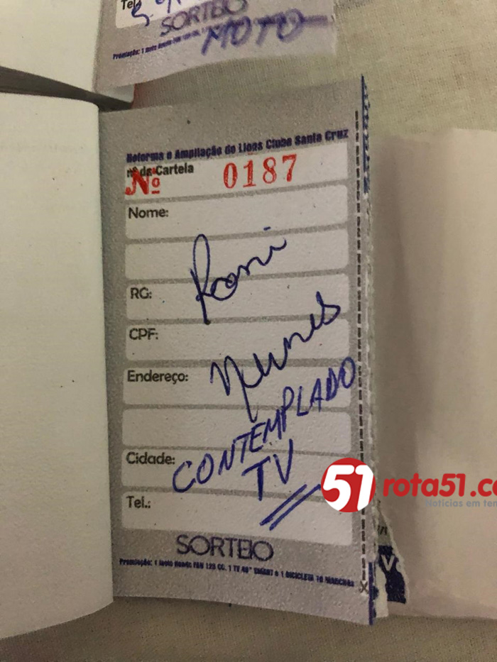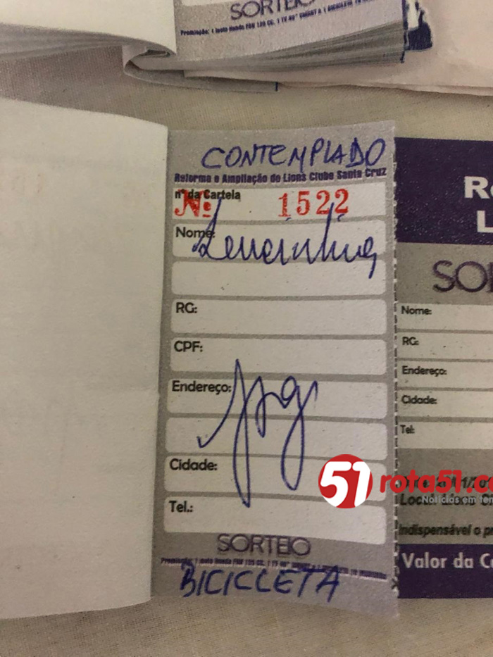 Aconteceu no dia 04/05 (sábado) às 14hs na sede do Lions Clube Santa Cruz, no bairro Juca Rosa, nesta cidade, o sorteio de prêmios em prol da reforma da sede do Clube.