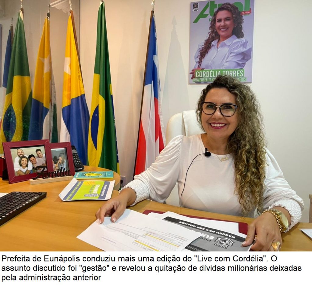 “Live Com Cordélia” revela quitação de dívidas milionárias deixadas pela gestão anterior em Eunápolis