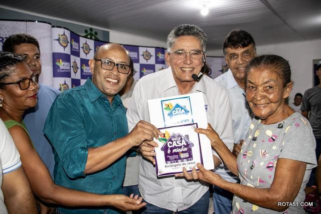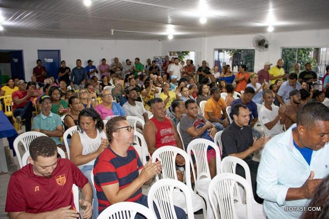 O primeiro a receber o documento, das mãos do Prefeito Jânio Natal, foi o Padre Wagnei Lima, representando a Paróquia de Nossa Senhora do Sagrado Coração; os fiéis e a comunidade aguardavam, há 10 anos, por este momento.