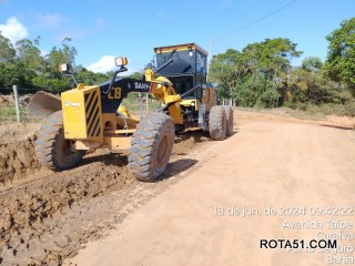 O trabalho está sendo feito com duas máquinas patrol, uma na estrada para Caraíva e outra para São Geraldo. O patrolamento nivela a superfície da estrada e uniformiza o pavimento, eliminando buracos e deixando o trânsito mais seguro para os moradores e turistas que transitam nas localidades.