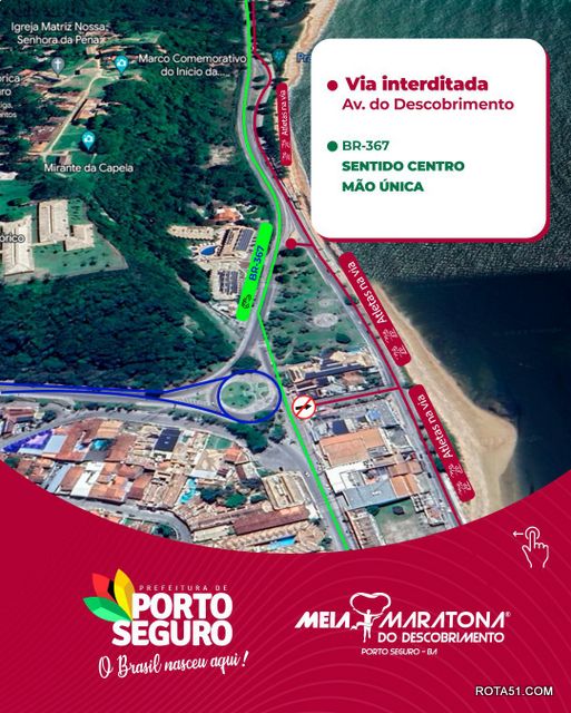 Para garantir a segurança dos participantes da competição, a Prefeitura de Porto Seguro, por meio da PORTRAN (Autarquia Municipal de Trânsito e Transporte de Porto Seguro), promoverá algumas intervenções no trânsito na região do Centro e Orla Norte.