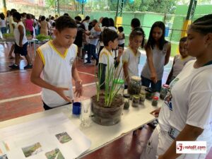 Um evento especial mexeu com a rotina dos alunos da Escola Municipal Padre José de Anchieta. Sob a coordenação da professora de Ciências da Rede Municipal de Ensino, Manuella Dultra, eles participaram, nesse mês de dezembro, da Mostra de Conhecimento Do Campo ao Mar: sustentabilidade e bem-estar em um mundo em transformação. Com o tema central focado em tecnologia, sustentabilidade e qualidade de vida, os projetos apresentados destacaram a criatividade e o compromisso dos estudantes em abordar questões globais como o impacto ambiental, aquecimento global, pegada de carbono e a saúde humana.
