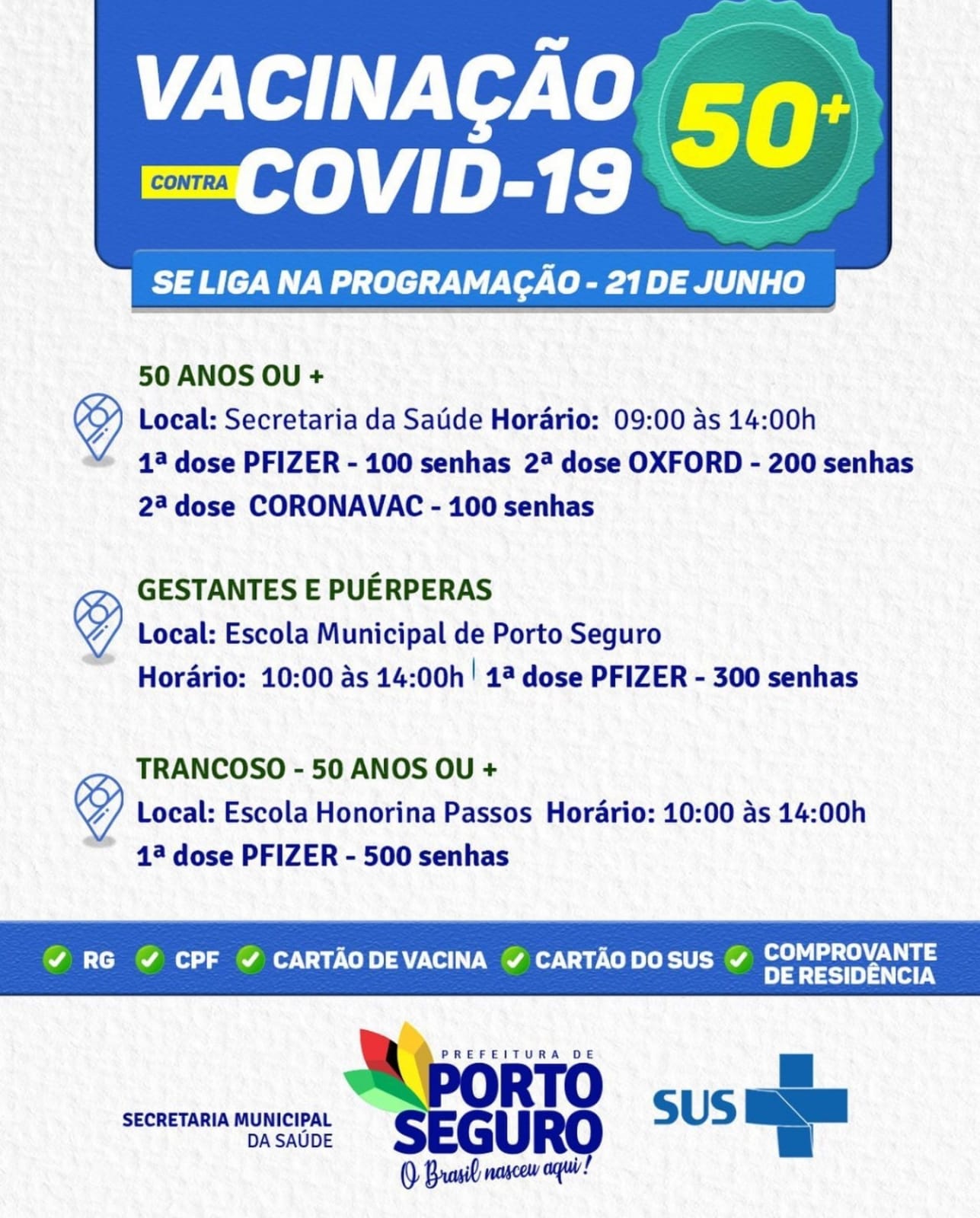 SEGUNDA É DIA DE VACINAÇÃO CONTRA A COVID-19 – 50 ANOS OU MAIS