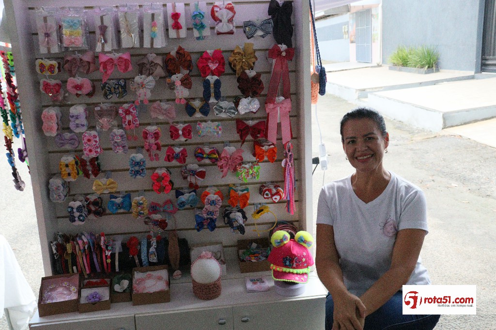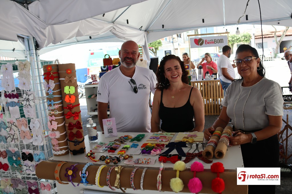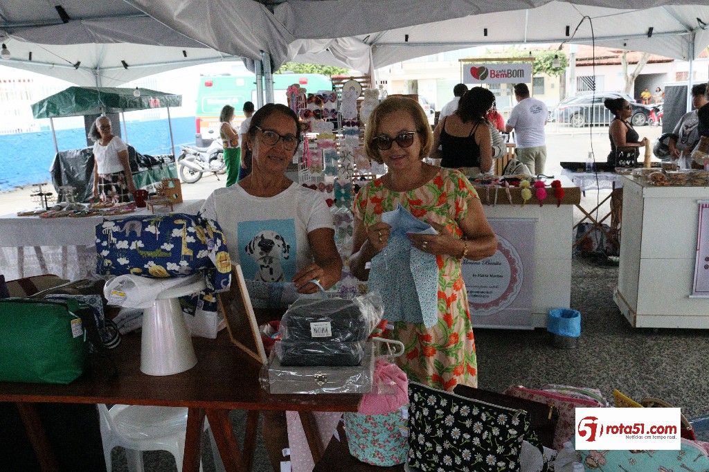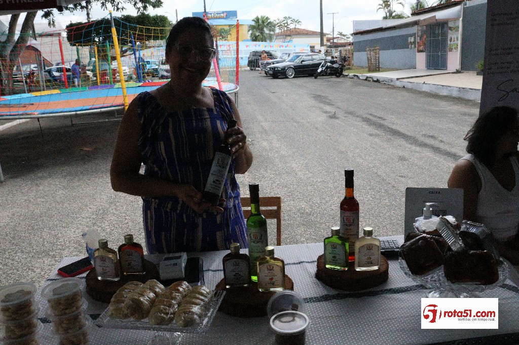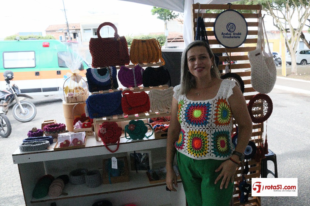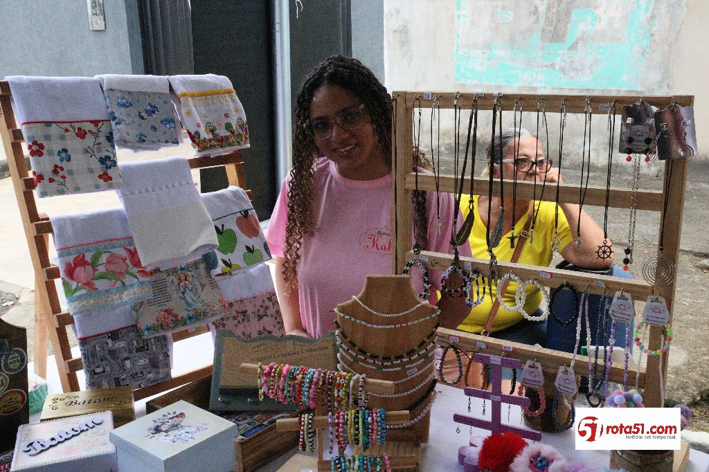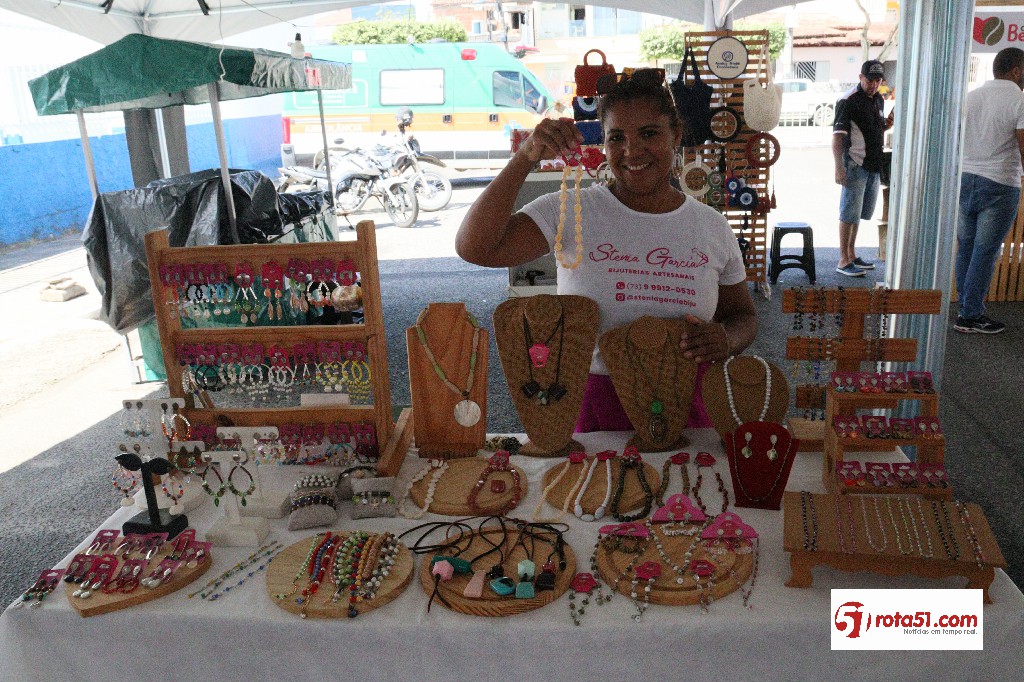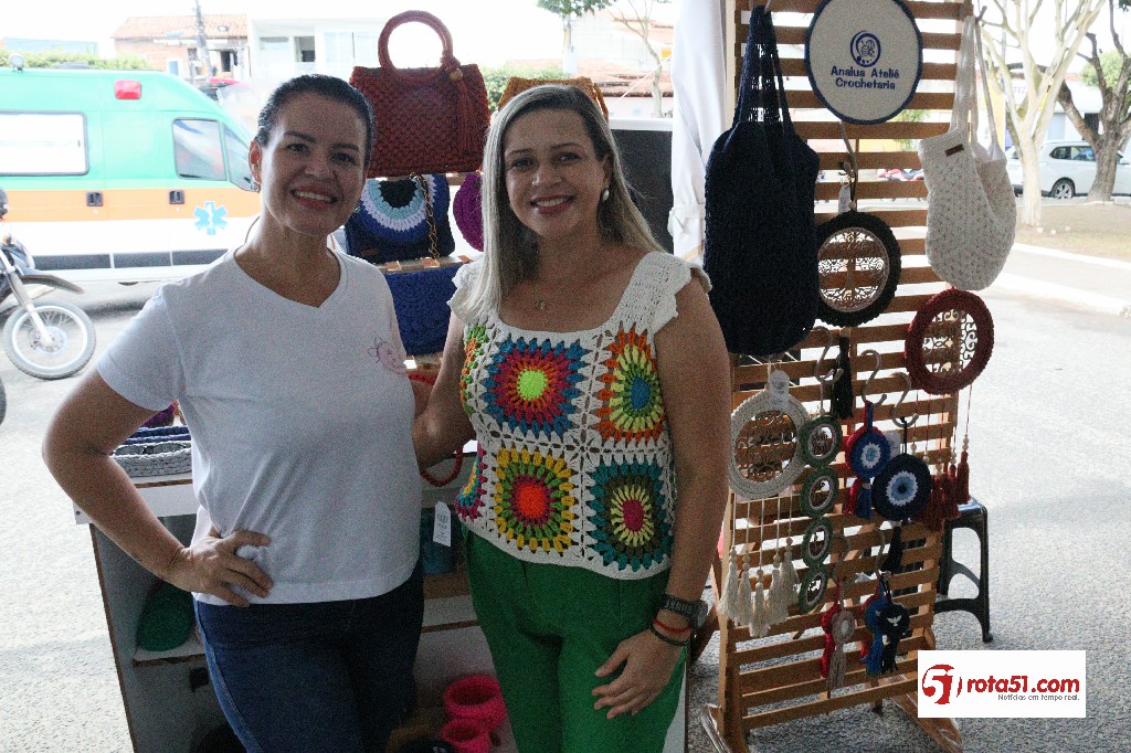 Ao lado da exposição de carros antigos, estiveram presentes artesãs e artesãos da cidade, expondo seus trabalhos manuais, como bolsas, joias, comidas típicas, salgados, licores e outros artefatos que demonstram a criatividade de cada um.