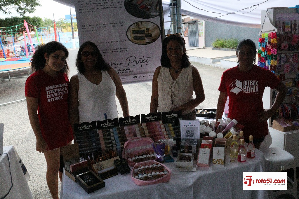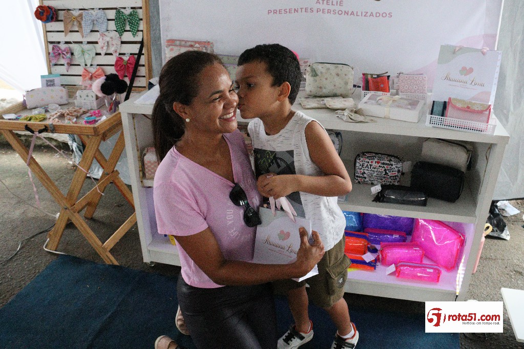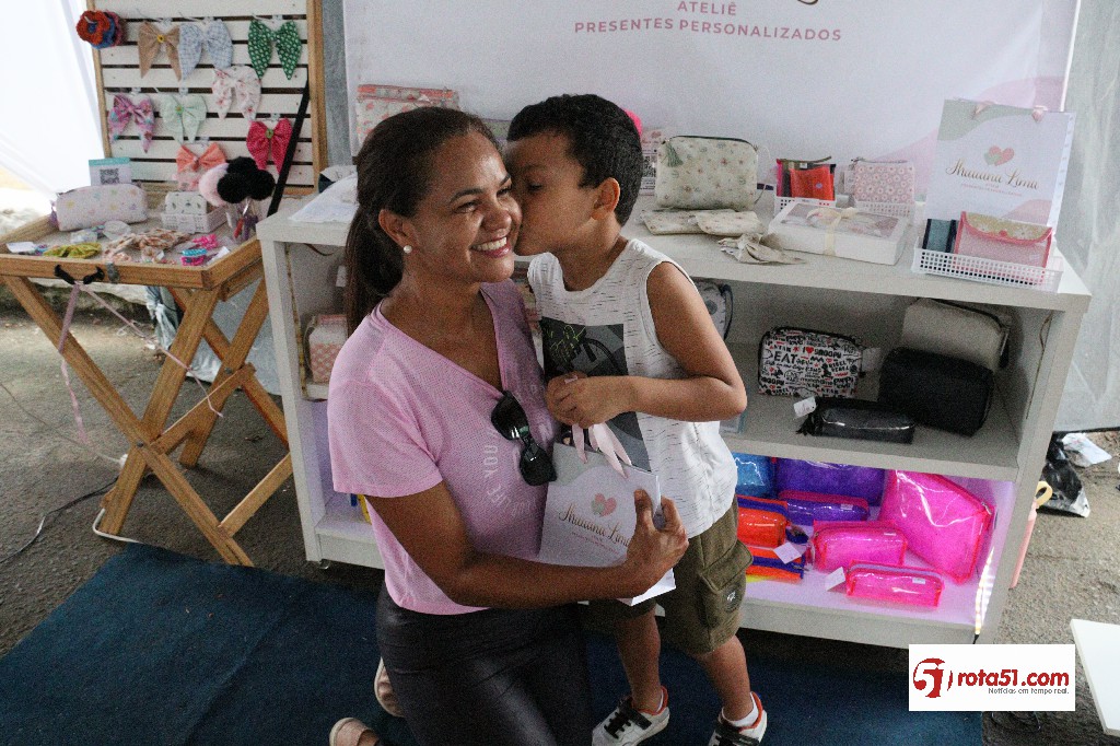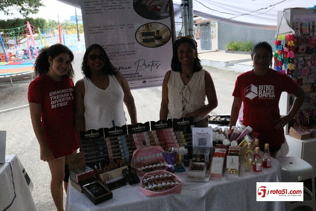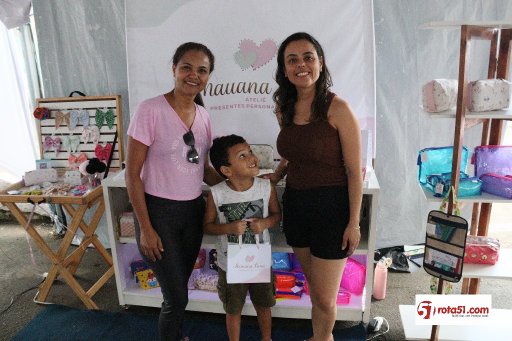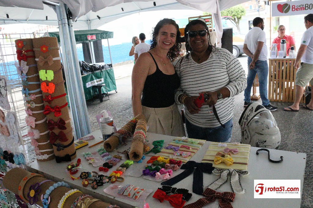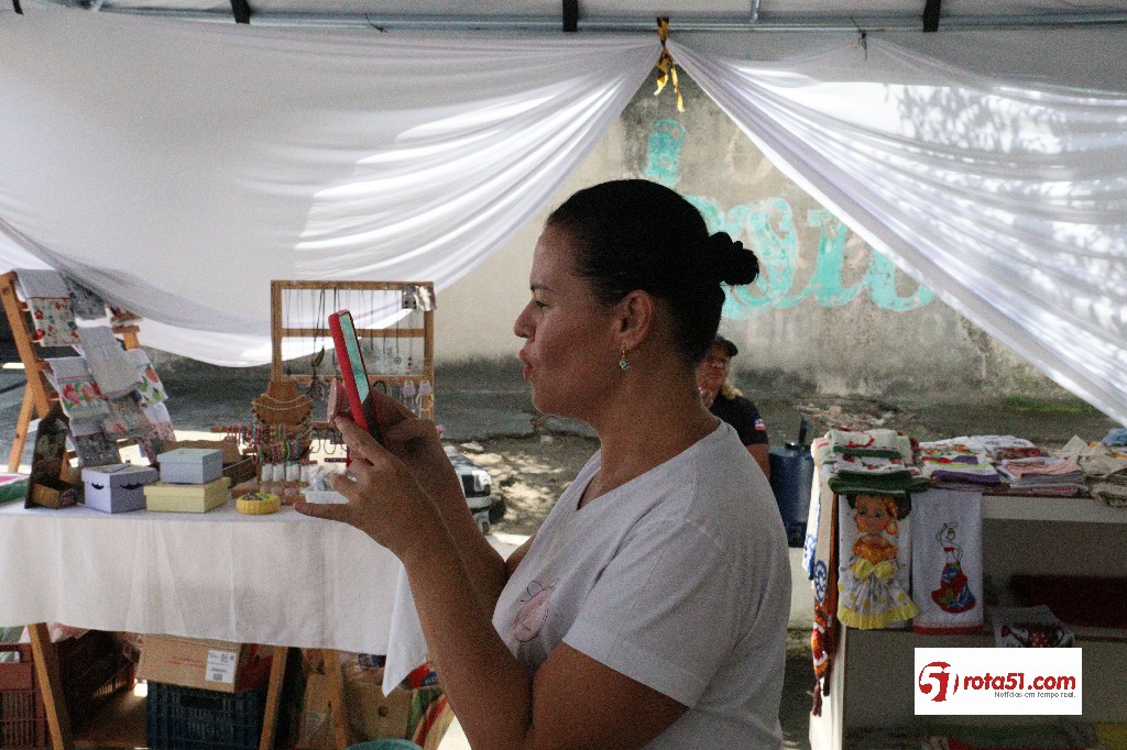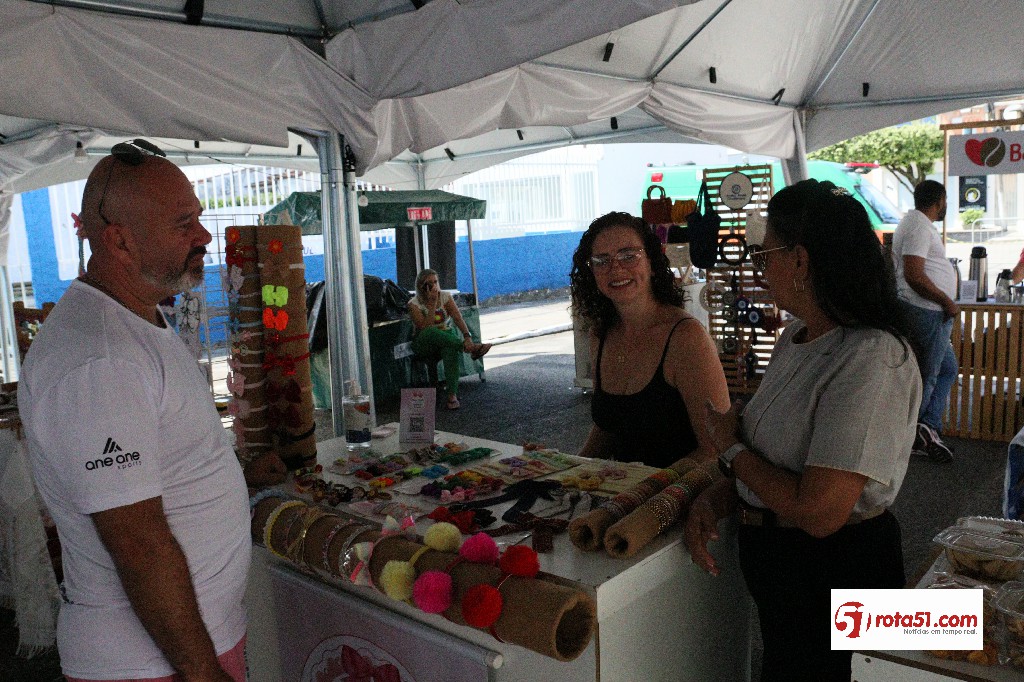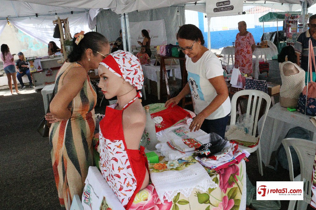 Ao lado da exposição de carros antigos, estiveram presentes artesãs e artesãos da cidade, expondo seus trabalhos manuais, como bolsas, joias, comidas típicas, salgados, licores e outros artefatos que demonstram a criatividade de cada um.