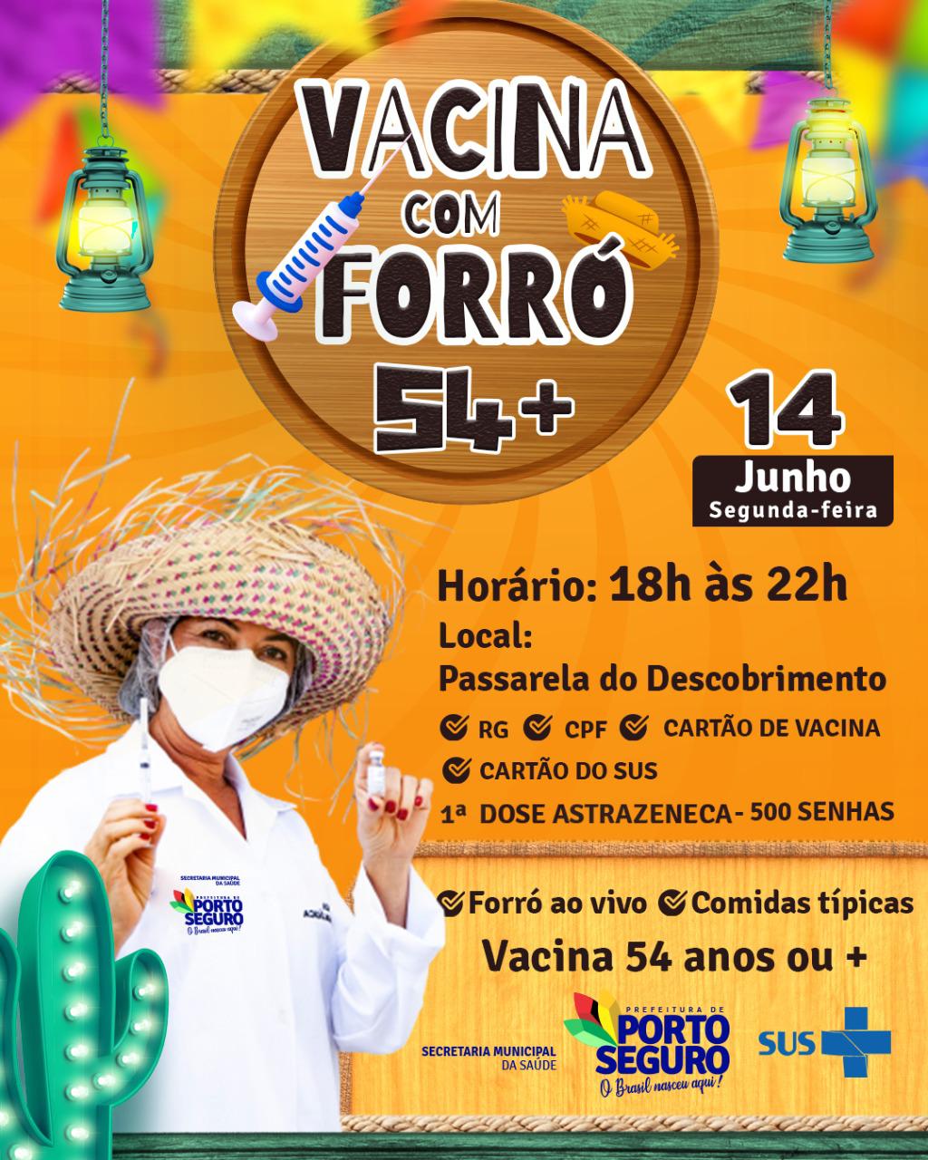 Nesta segunda-feira seguimos a todo vapor na Passarela do Descobrimento, com forró ao vivo, comidas típicas e vacina da AstraZeneca.
