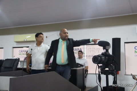 O primeiro a usar a tribuna foi o vereador Adriano, que iniciou a sua fala, pedindo 1 minuto de silencio, pela morte do ex radialista Ronaldo Santana, Adriano citou o nome de Manuela a viúva e do filho Márcio Allan, ex funcionário da CME. Adriano falou que se pode acovardar diante de ameaças da vereadora Carmem, quando esta disse que “ o sangue de inocentes vai rolar”, depois fez críticas ao vereador Artur Dappé, dizendo que ele tem que respeitar, pois o povo está sambando pelo gasto de dinheiro público, Adriano citou que tem gente que tem mais de 15 postos de gasolina, comprados com dinheiro público, e recordou a operação “passárgada”, quando houve prisão, dizendo que todos os envolvidos não passa de uma quadrilha e, que não se pode aceitar uma quadrilha no poder, e depois partiu pra cima do vereador Zé Carlos, mostrando um áudio dele, mas Jorge Maécio impediu do ato, mas chegou a falar da cassação de Zé Carlos. Mas a tônica do discurso de Adriano, foi quando ele sem dó e nem piedade, partiu pra cima da vereadora Carmem, Adriano, chegou a usar termos inapropriados para “xingar”, não se sabe se ele esqueceu que o filho de Carmem estava na plateia, ou se fez para provocar, e depois insultou ainda mais a vereadora, o rota51.com registrou tudo, foi quando o filho de Carmem, começou a defender a mãe, entrou no ritmo e, quase que o circo pegou fogo, o irmão da vereadora foi até a plateia e retirou do local o sobrinho “ mais conhecido como “bauzinho. Tudo isto pelo fato de Carmem e Artur Dappé, terem ido a delegacia, registrar uma queixa, pelo fato de Adriano, segundo eles, ter sacado um revólver na sala do presidente da Câmara.