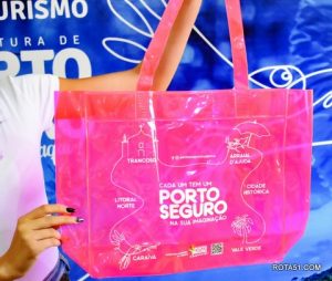 O kit é composto por cinco itens, em diferentes cores, contempla informações e ilustrações dos principais atrativos turísticos de Porto Seguro num lindo roteiro com diversas opções de passeios, mostrando o Litoral Norte e Centro Histórico na sede; Arraial d’Ajuda; Trancoso; Caraíva e Vale Verde. Entre os brindes estão folder informativo com a história e ilustração desses lugares e suas respectivas estampas em copo eco, bolsas de praia e bonés.